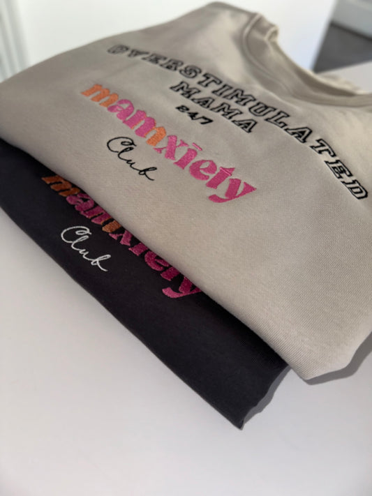 Mama, we see you. The chaos, the love, the exhaustion, the mental load - it’s all part of motherhood. That’s why we created the Overstimulated Mama 24/7 Mamxiety Club sweatshirt and t-shirt, designed for the moms who are always on, always juggling, and in desperate need of a mega comfort 🧡